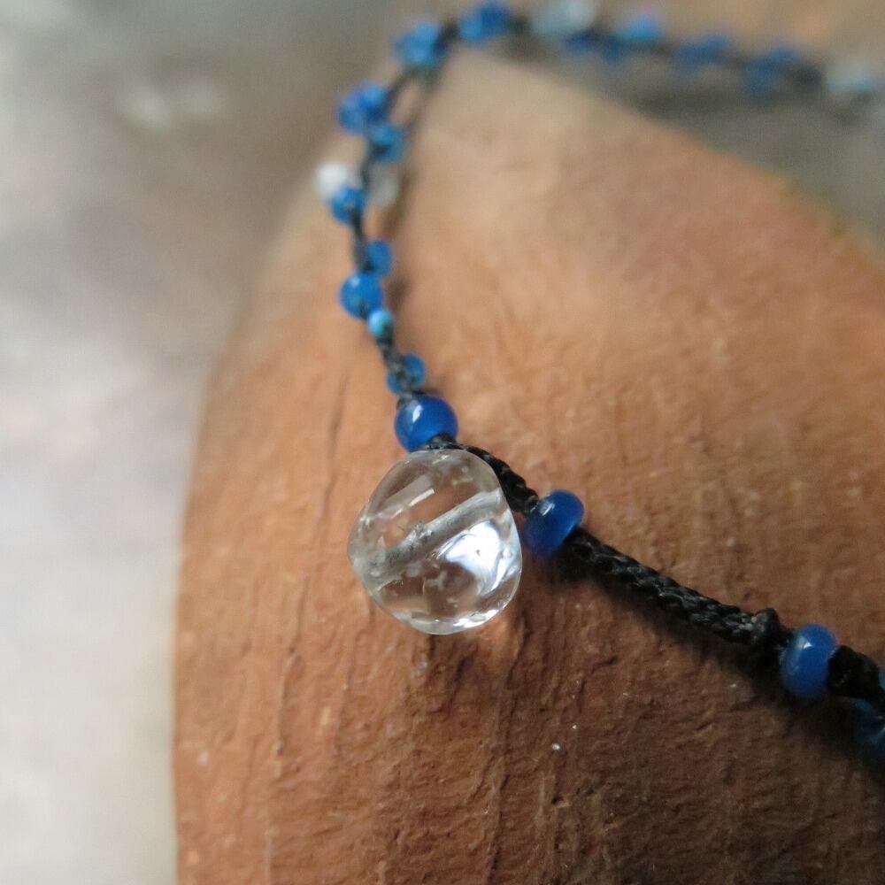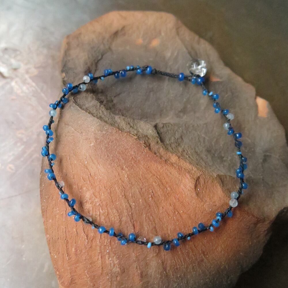 青ヴェネチアンシード + インド水晶 ブレスレット