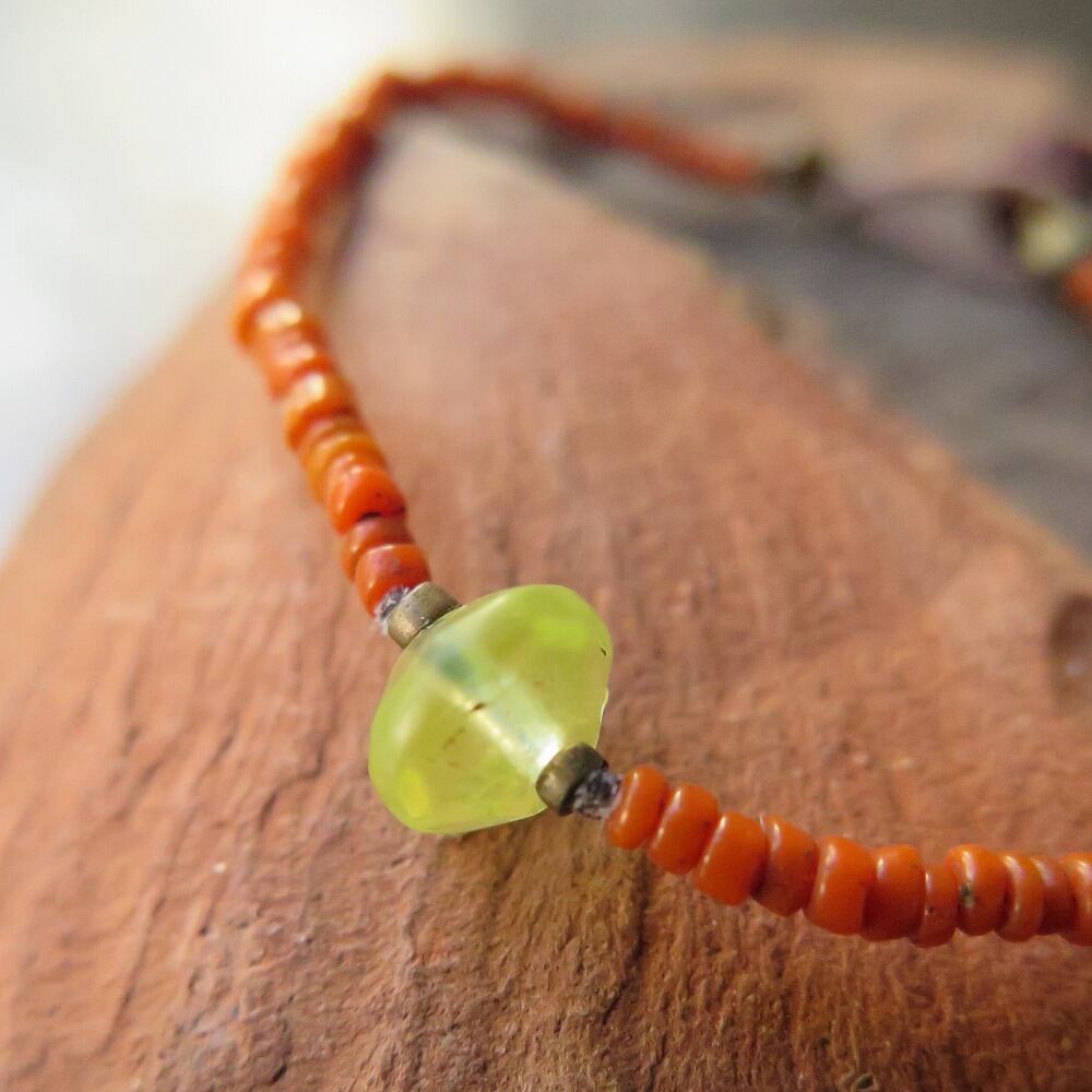 ウランガラス + インドシードビーズ オレンジ & オリッサブラス ブレスレット