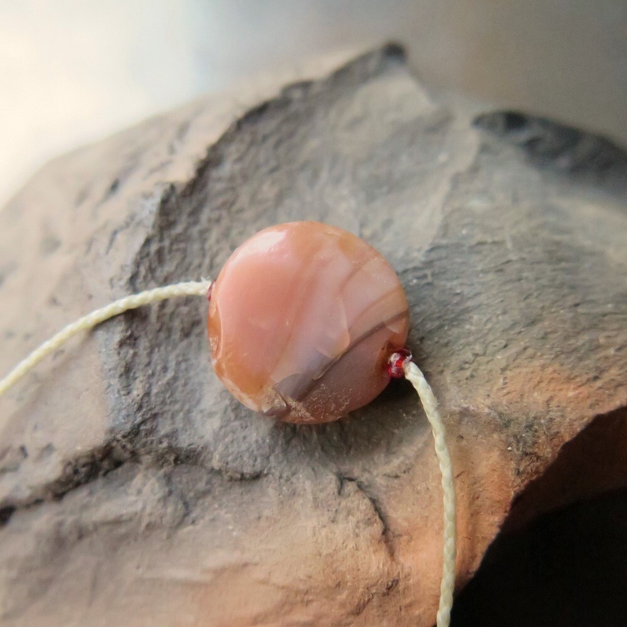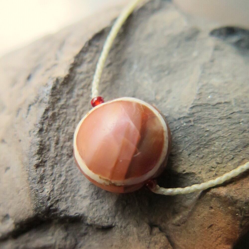 丸く削り出したカーネリアンに丸く描かれた白い線。