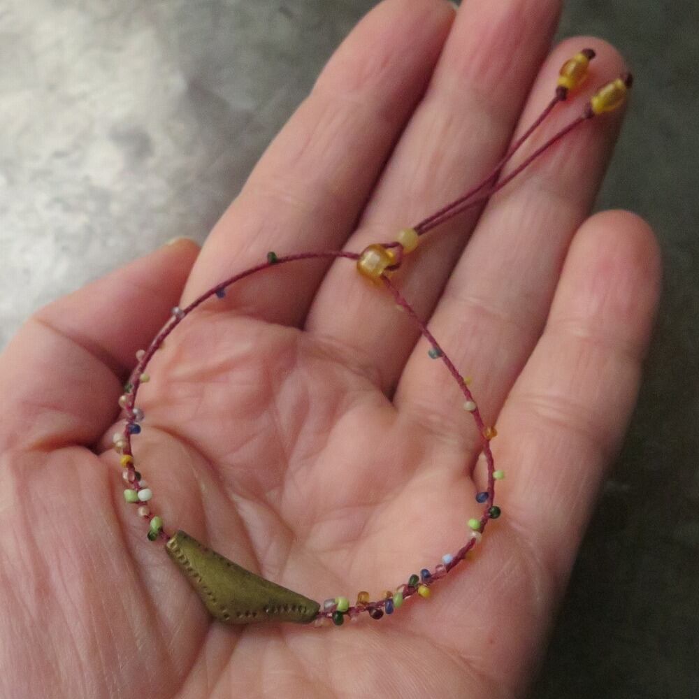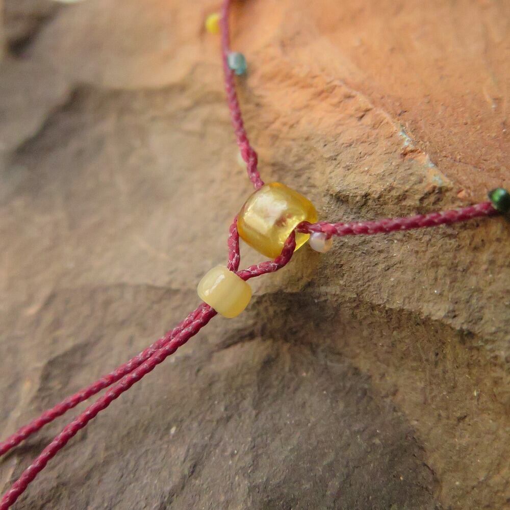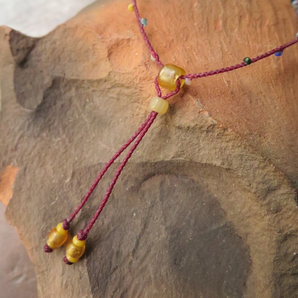 サイズ調整のビーズ、紐の先端のビーズはヴェネチンシードビーズ。