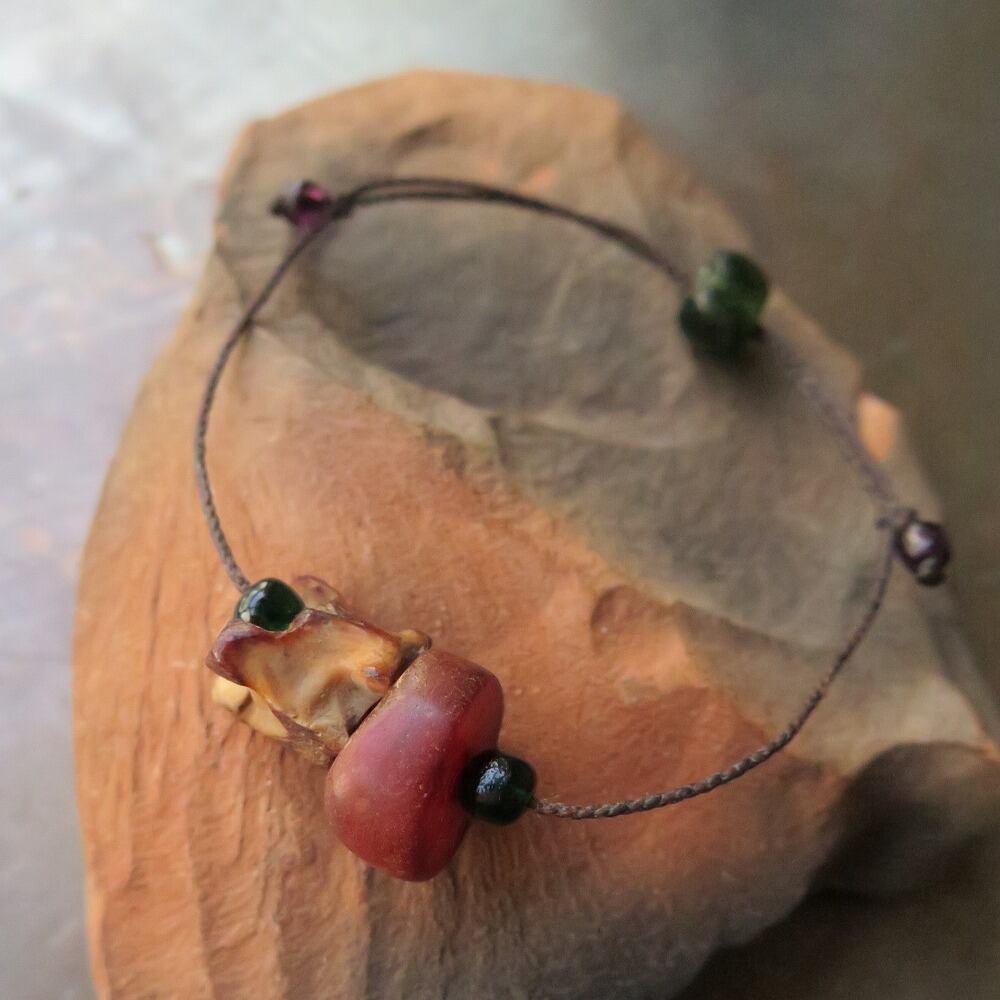 アフリカ渡りの蛇骨と、イエメンからの琥珀を並べて、ブレスレットに仕上げました。