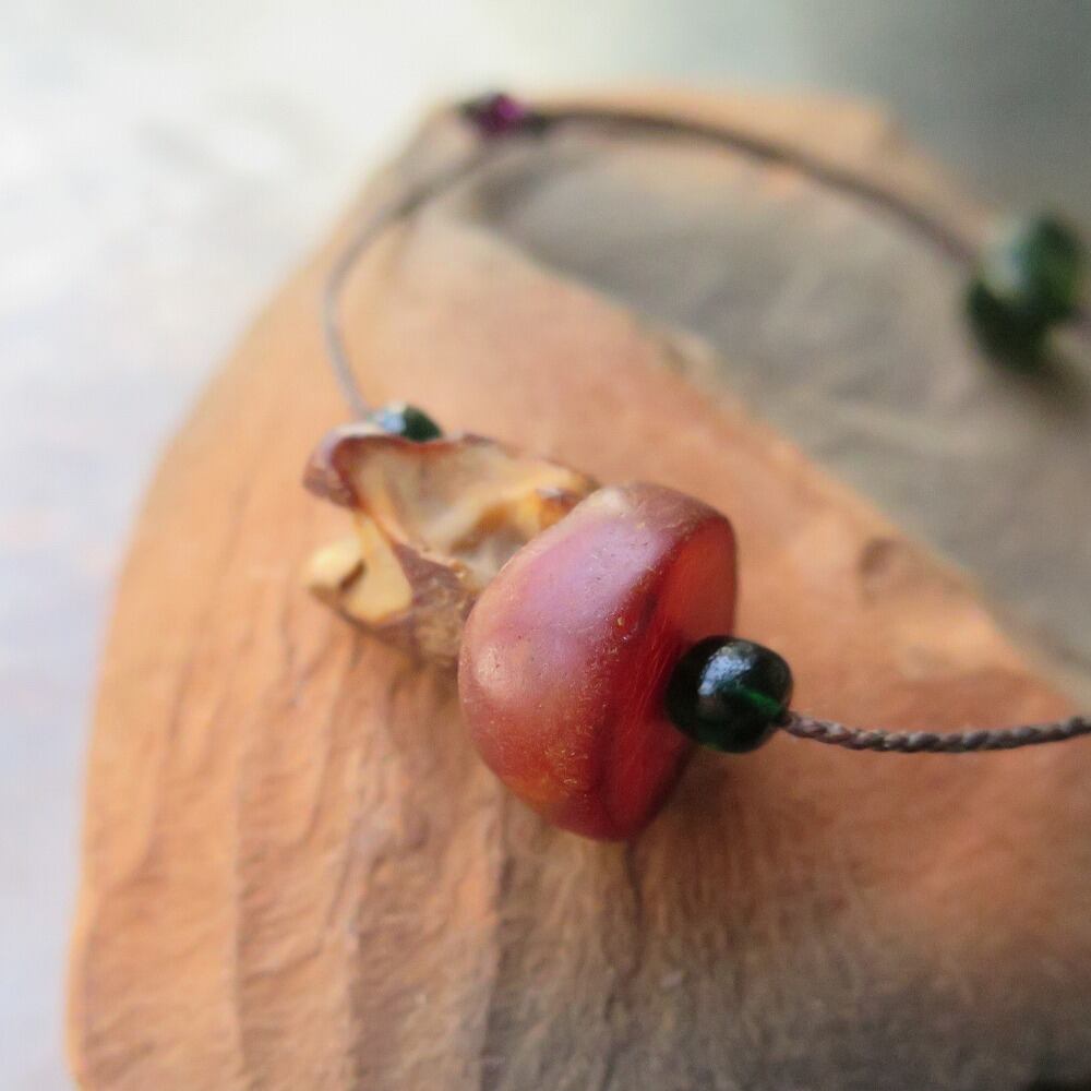 蛇骨 & 琥珀 + 緑 & 紫 ブレスレット