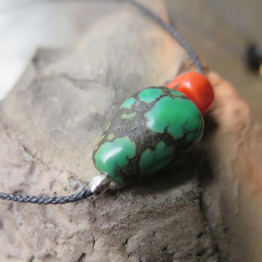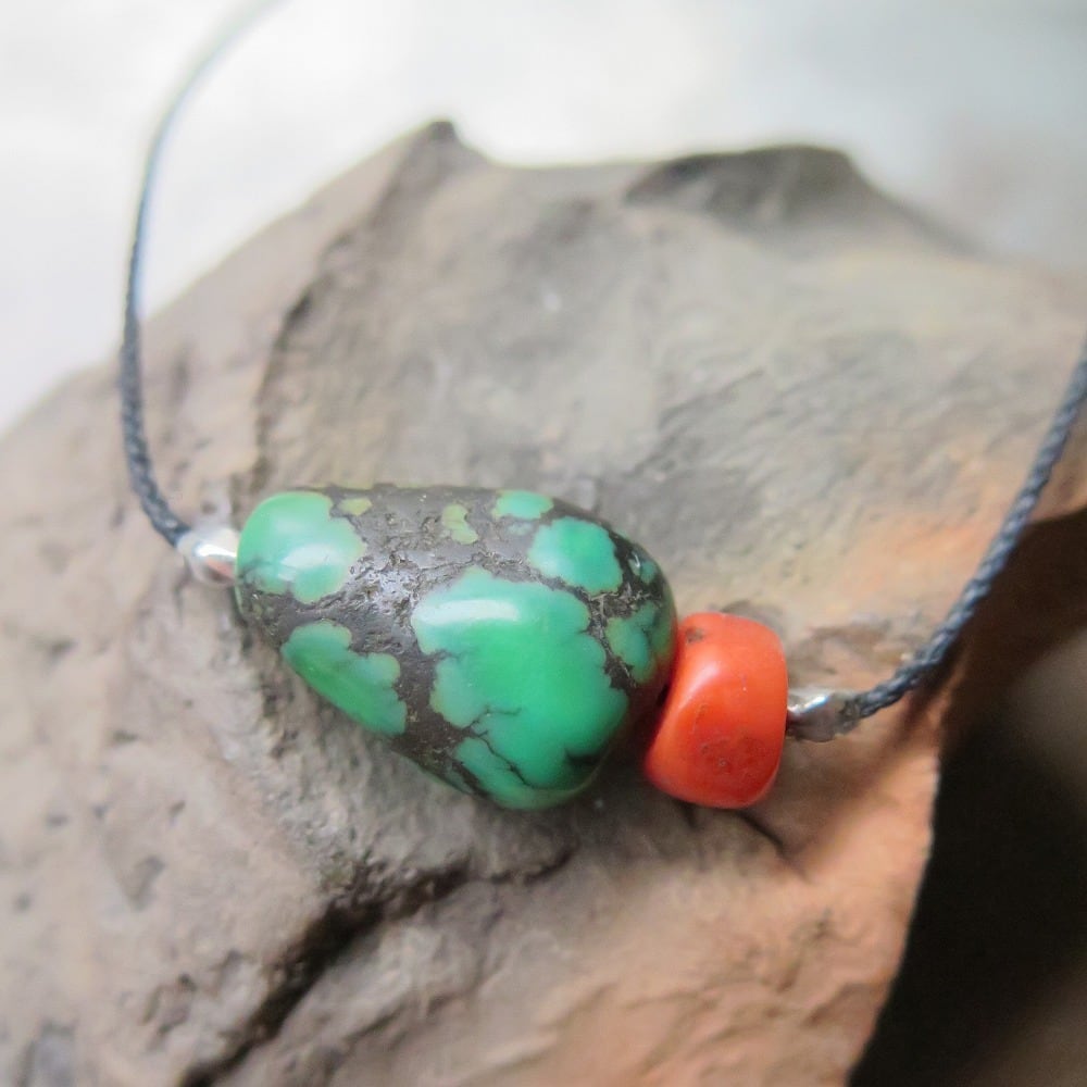 程よいサイズのチベタンターコイズに、アジア渡りのアンティーク珊瑚を添えました。