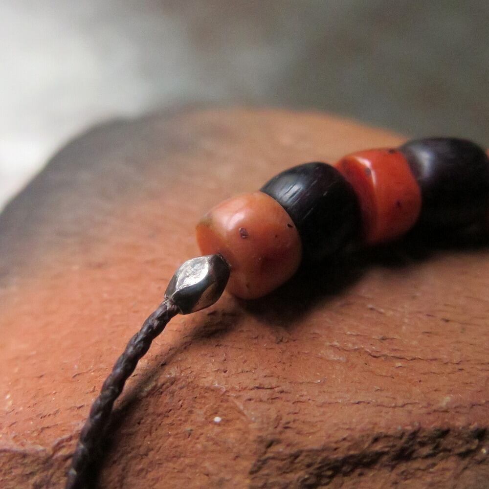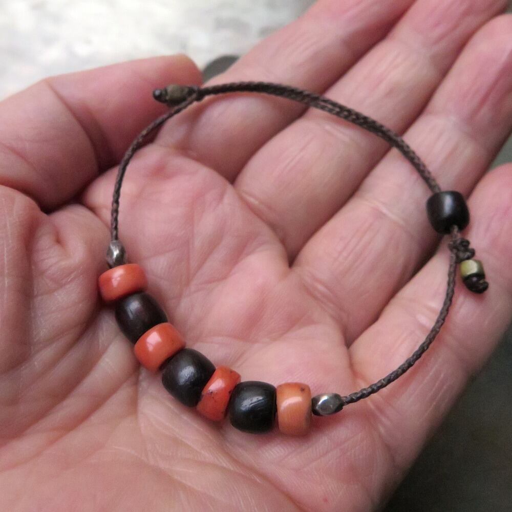 チベットでお数珠として使われていた紫檀と、アジア渡りのアンティーク珊瑚を並べ、ブレスレットに仕上げました。