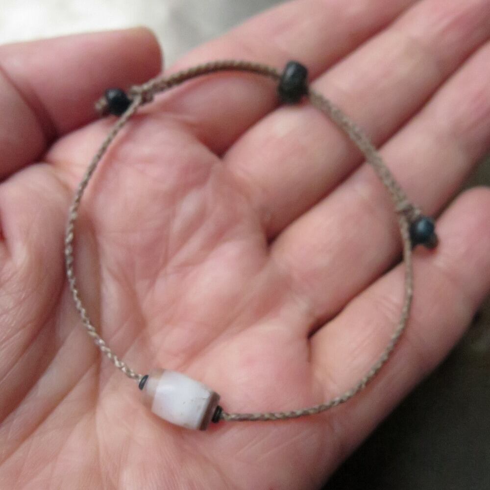 古代瑪瑙 白 & 茶 + インドパシフィックビーズ 緑 ブレスレット
